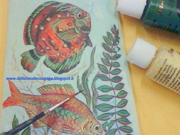 Step 8: utilizzando i colori acrilici riprendete alcuni punti, tracciate foglie e alghe